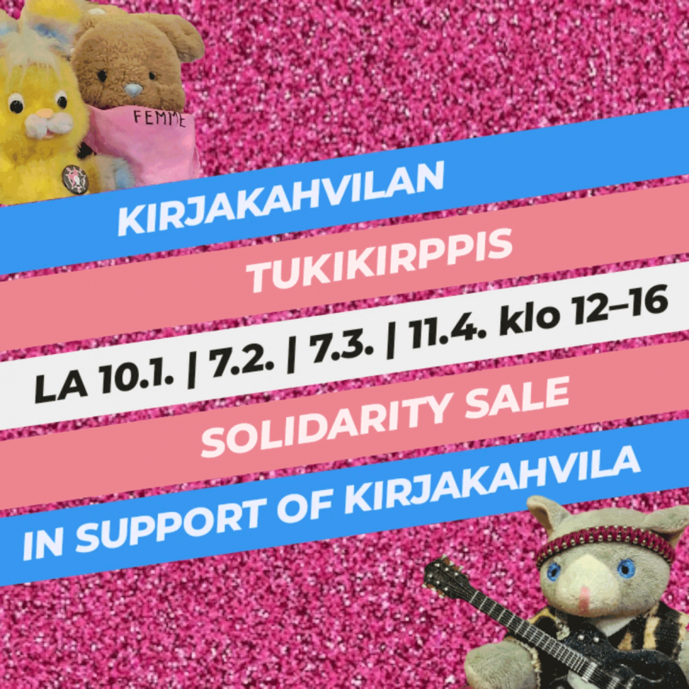 Solidarity sale in support of Kirjakahvila takes place inside the café once a month until the summer season. Come for fair trade coffee and vegan cake, stay for community and politics, go home with new or second-hand books, comics, board games, movies, music, console games, crafts, clothes.