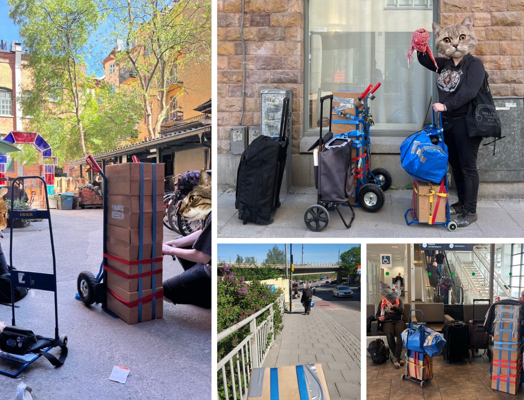 Nakba-päivänä 15.5. käväisimme Tukholmassa hakemassa nokkakärryillä muutaman laatikollisen Palestiinan Länsirannalta peräisin olevaa oliiviöljyä ja -saippuoita. Samalla Kirjikseen tuotiin lasti Chiapasin zapatistiosuuskuntien viljelemää kahvia.