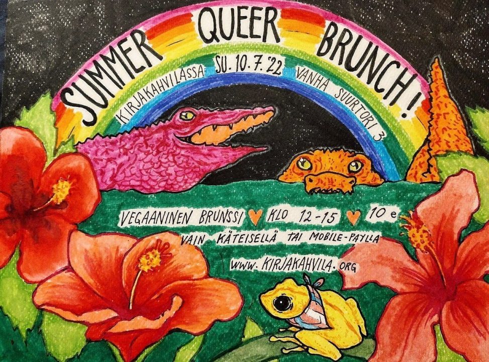 Tervetuloa kesäiselle queer-brunssille Kirjakahvilaan tänä sunnuntaina! 🐊🏳️⚧️🌺⚧️🍹🏳️🌈