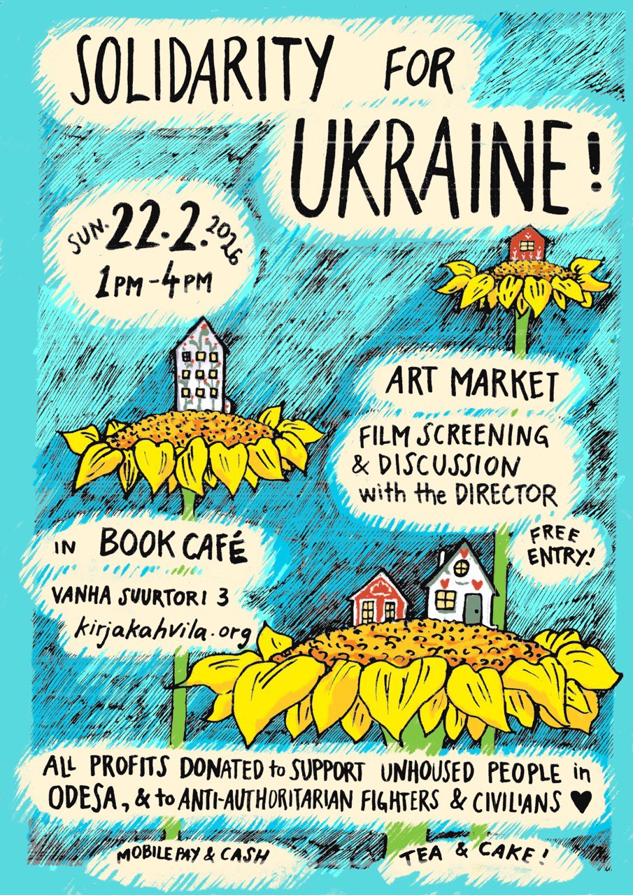 Tapahtuma on osa Solidarity Collectives’in toimintaviikkoja. 24.2.2026 venäjän täysimittaisen hyökkäyksen alkamisesta tulee kuluneeksi neljä vuotta. Toimintakutsu “2 weeks of action” englanniksi: https://www.solidaritycollectives.org/en/2-weeks-of-action-2026/