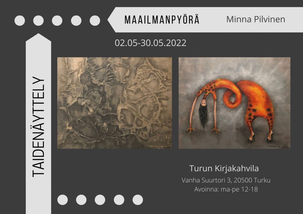 Minna Pilvisen Maailmanpyörä-näyttelyn avajaisia vietetään sunnuntaina 1.5.2022 klo 18-20. Tervetuloa!